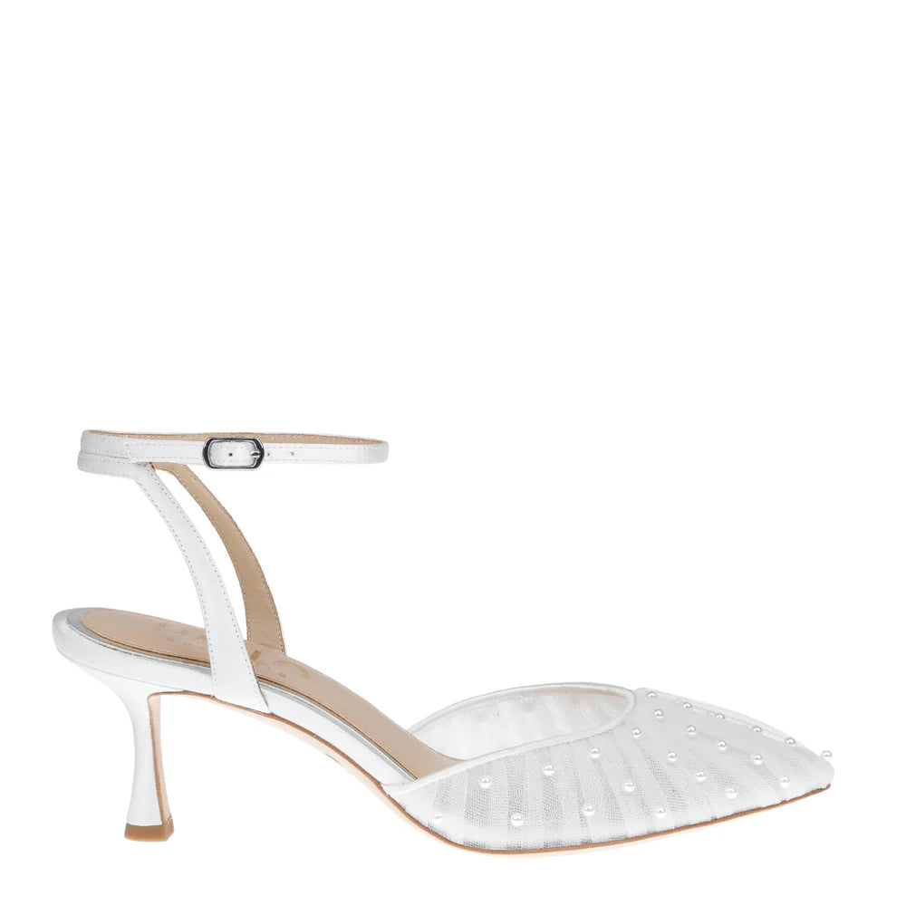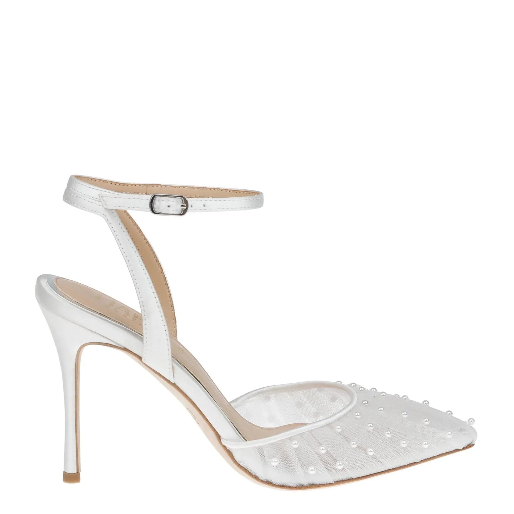 Beaded tulle, pearl accents, and just the right amount of sparkle. These gowns catch the light with every step and photograph like a dream. The Chantelle Heel, and her equally radiant sisters in shorter heels were made for moments like this.
