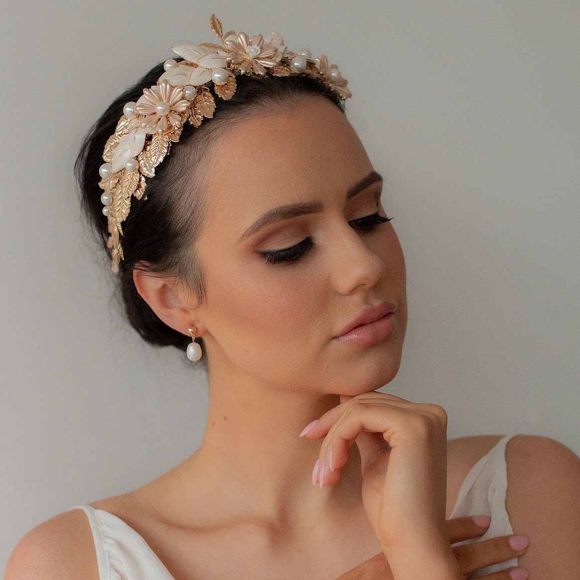 A'el Este - Mia - Natural Pearl Bridal Headband - Gold
