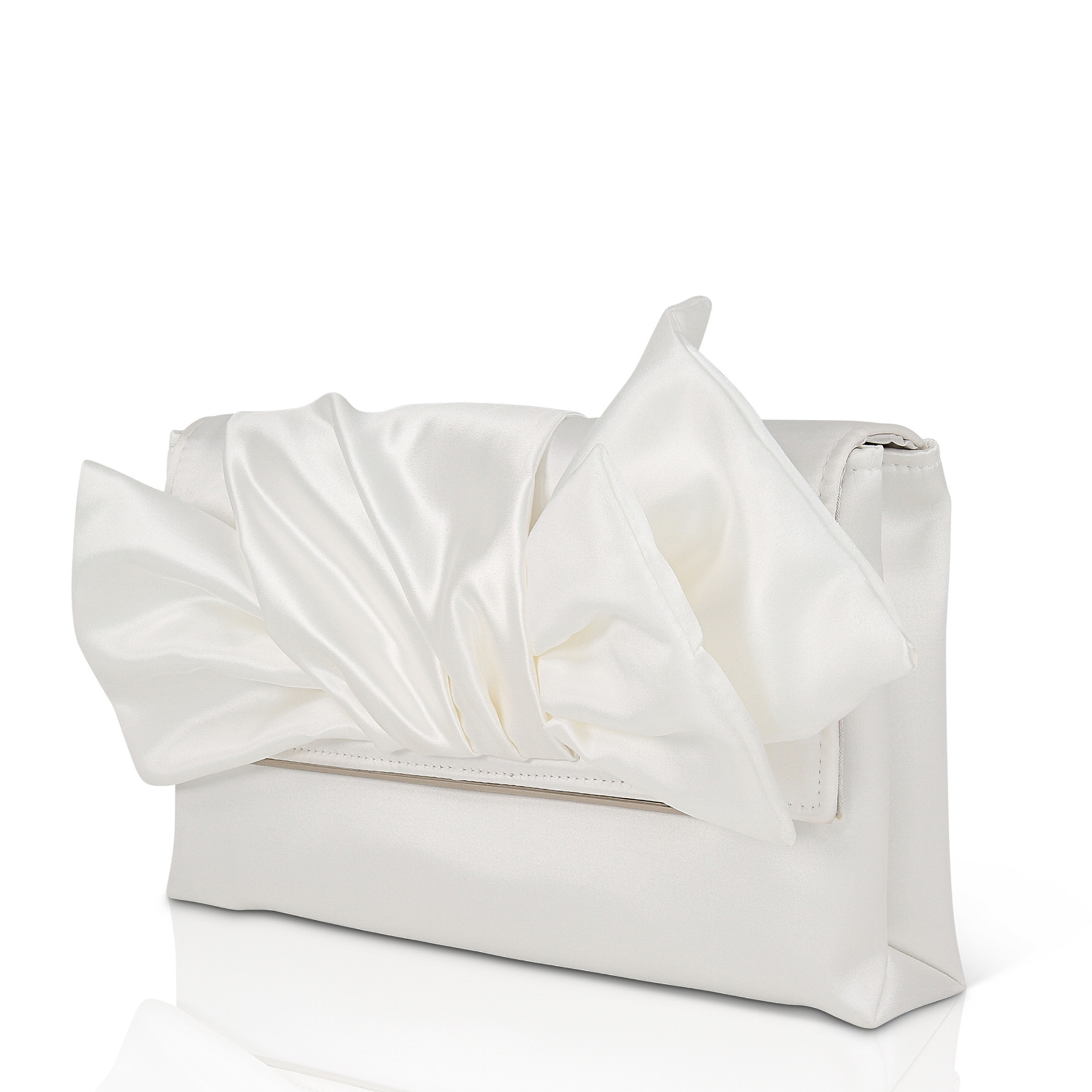 Caroline - Satin Origami Pouch Clutch - Soft White