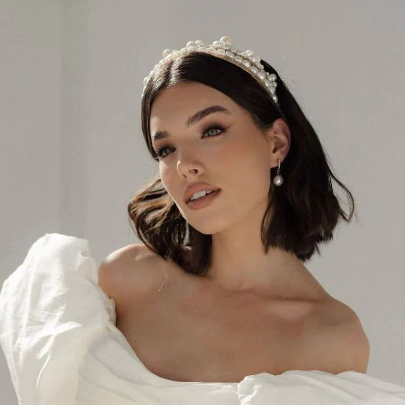 Audrey - Modern Pearl & Crystal Double Bridal Crown