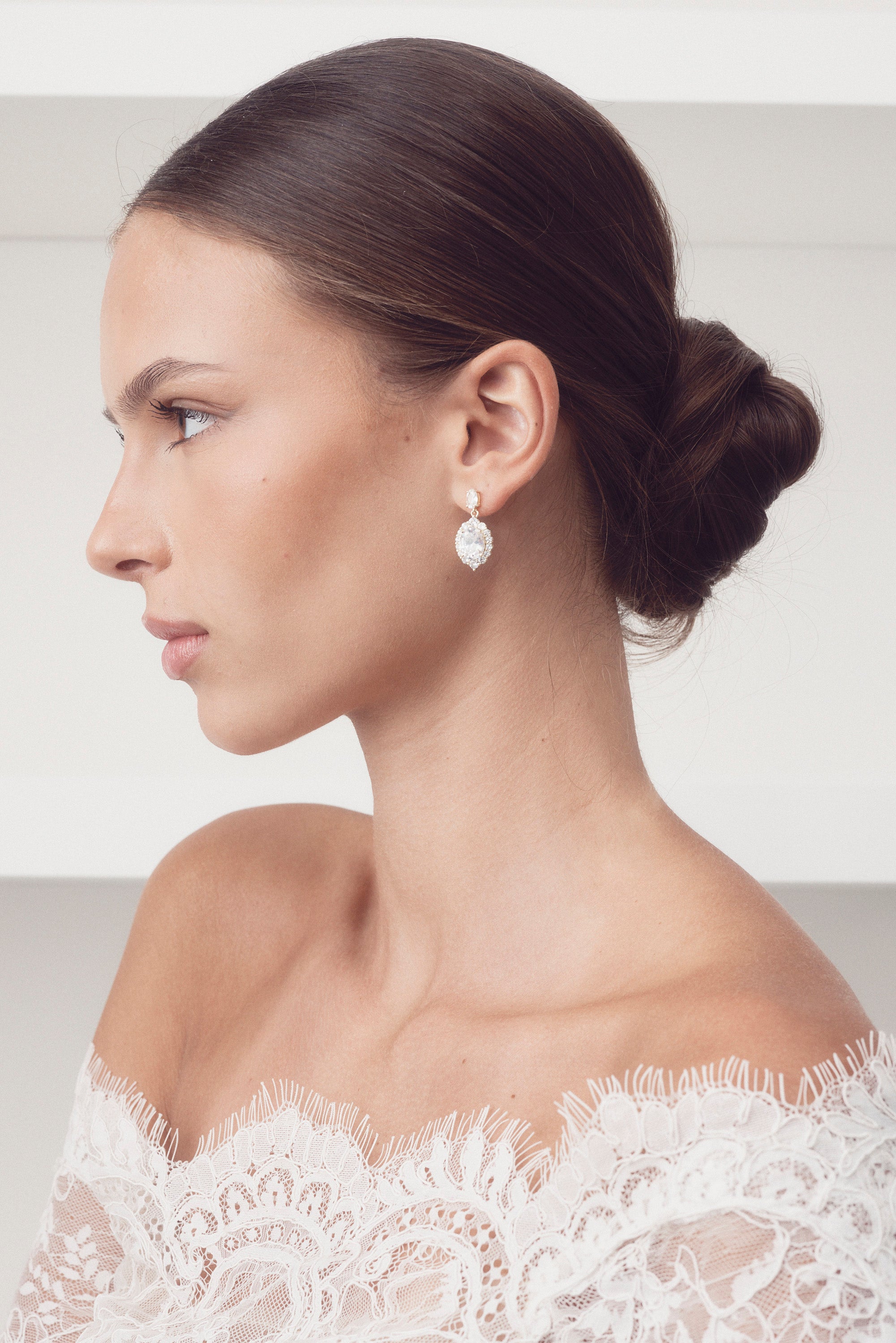 Anna - Classic Oval Drop Crystal Bridal Earrings