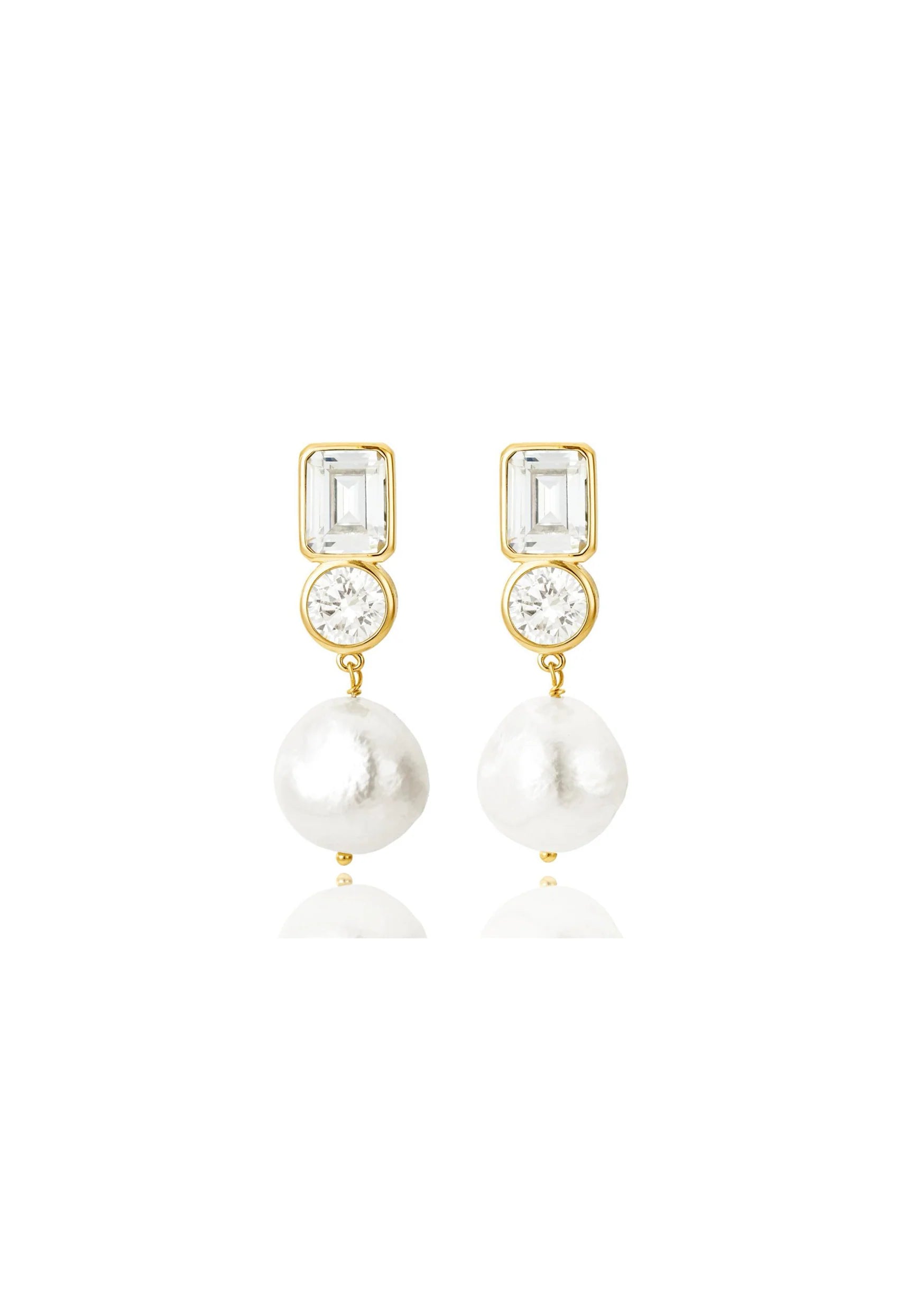 Lola Knight - Sutton - Pearl & Teardrop Crystal Earrings - 18K Gold