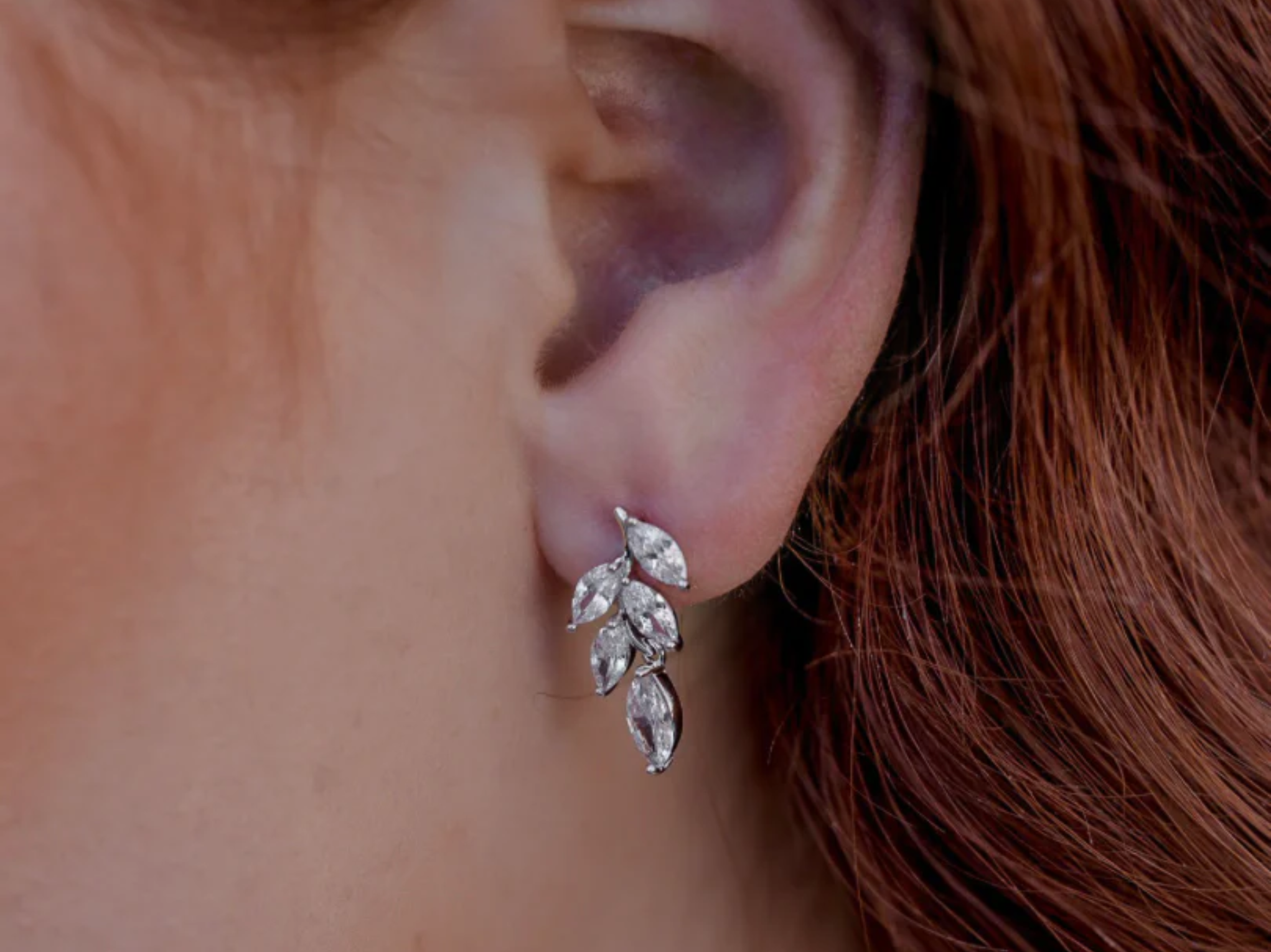 Eve - Crystal Dainty Leaf Drop Bridal Earrings