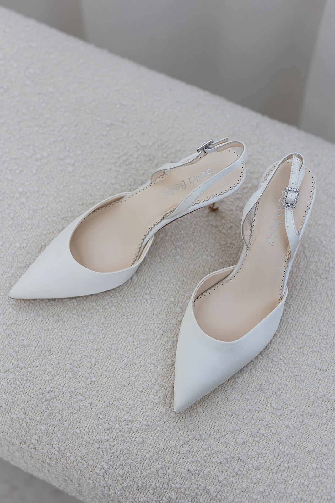 Easton - Slingback Block Heel Wedding Shoes with Tulle Bow
