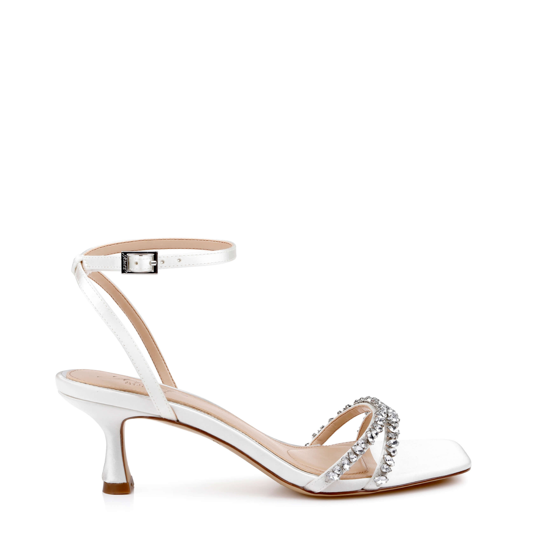 Nayla - Crystal Strap Kitten Heels - Ivory