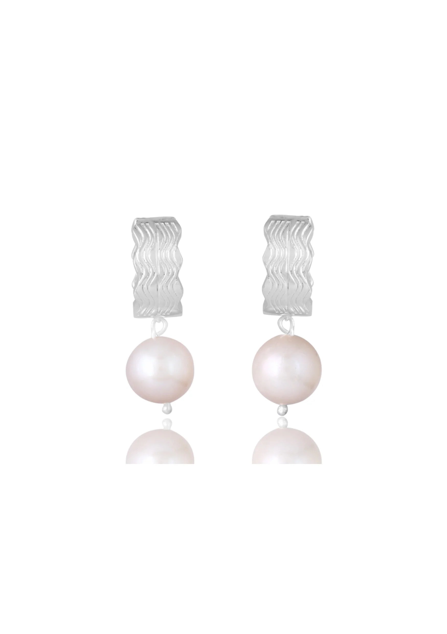 Lola Knight - Edie - Modern Bridal Pearl Drop Earrings - Silver