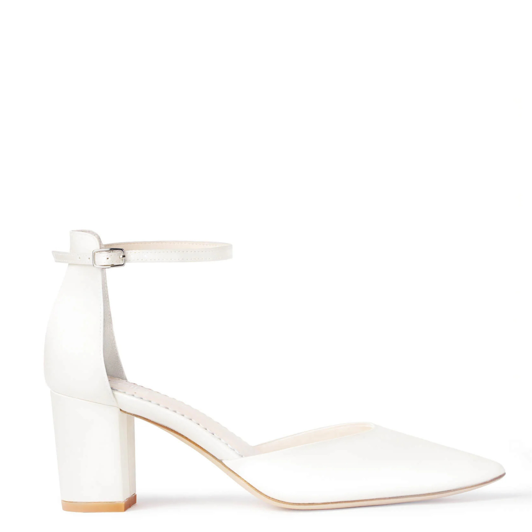 Federica - Pointed Toe Ankle Strap Pumps - Ivory