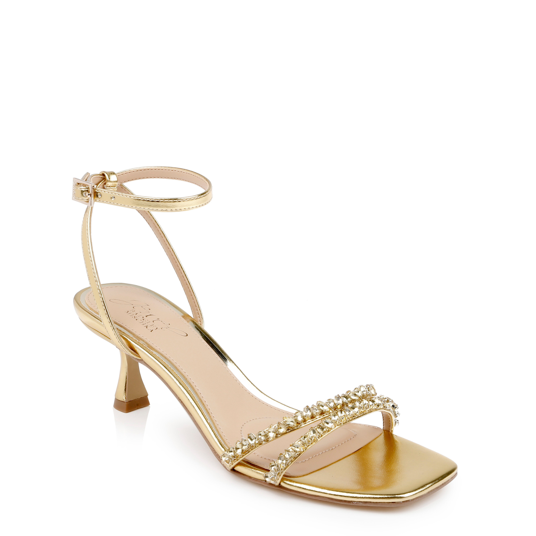 Nayla - Crystal Strap Kitten Heels - Gold Metallic