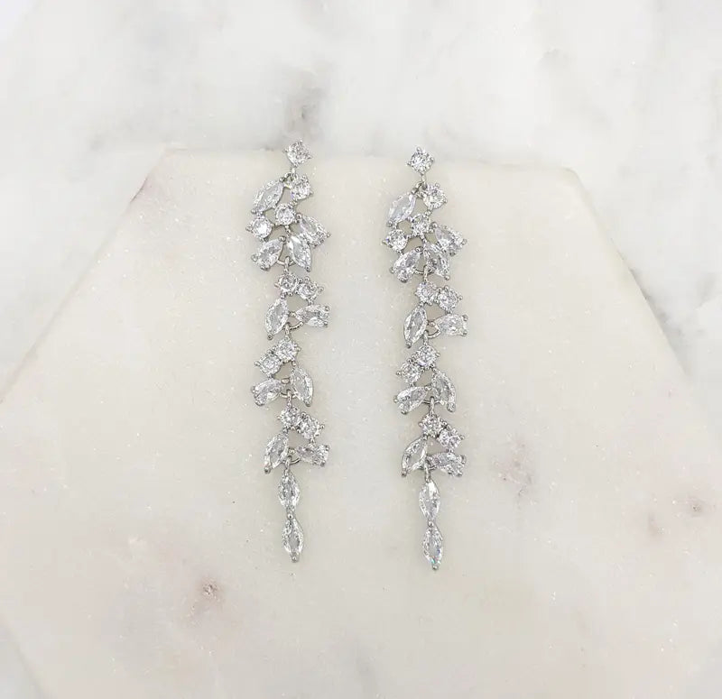 Esther - Delicate Crystal Cluster Drop Bridal Earrings