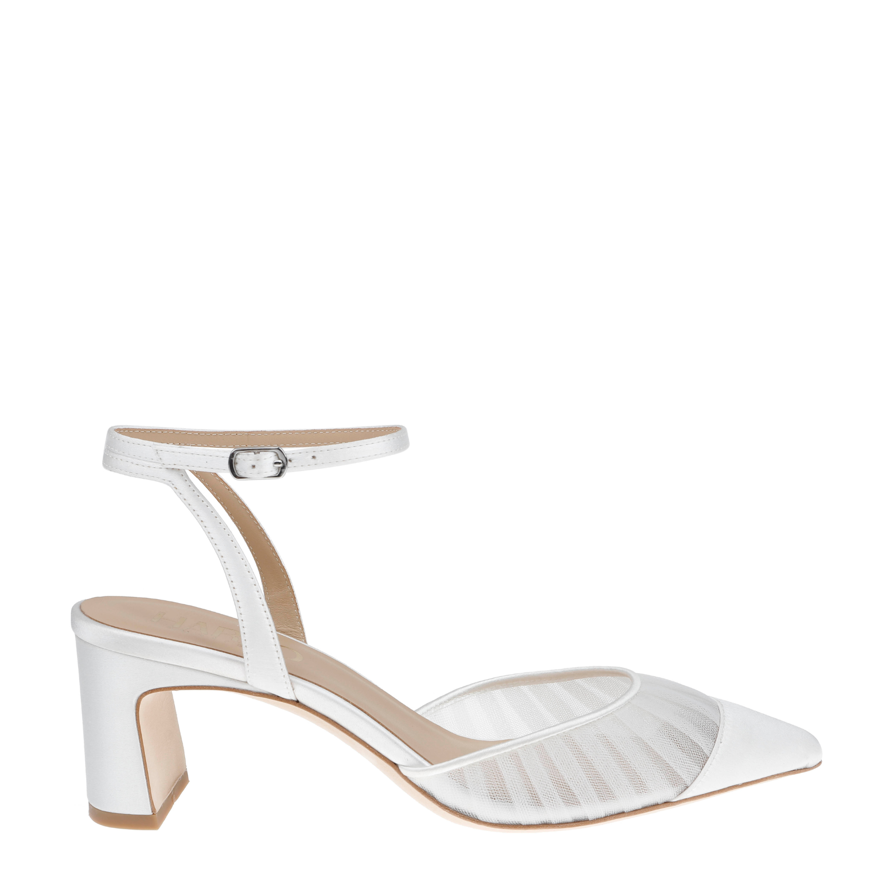 Farah - Tulle & Satin Pointed Toe Low Block Heel - Soft White